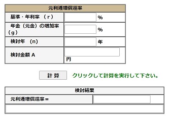算出する場合に使用する係数です。増加率(g)%が0の場合は、年金現価率