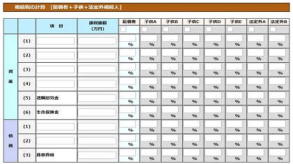 相続税の総額、又配偶者・子供一人当たりの相続税等を計算します。相続税